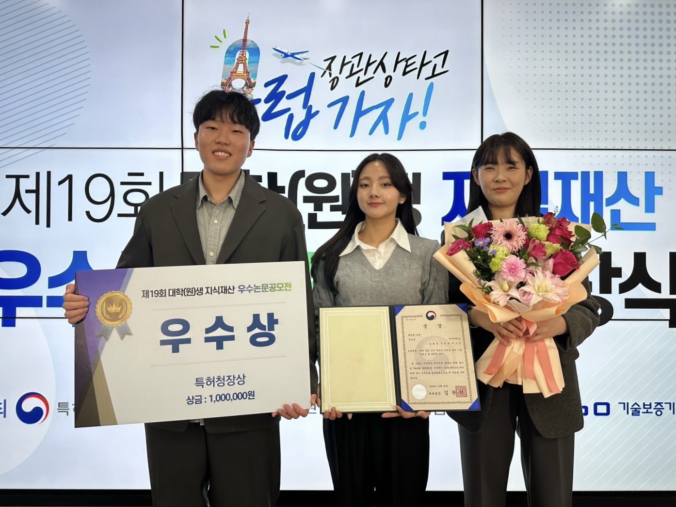 특허청에서 주최, 한국지식재산연구원에서 주관, 산업통장자원부 및 기술보증기금에서 후원하는 제19회 대학(원)생 지식재산 우수논문공모전에서 남희경, 우민수, 한고은 학생이 "특허 IPC 간의 연관성 분석을 통한 기술 트렌드 및 영향력 연구"로 참여하여 우수상(특허청장상)을 수상했습니다. [Link]
