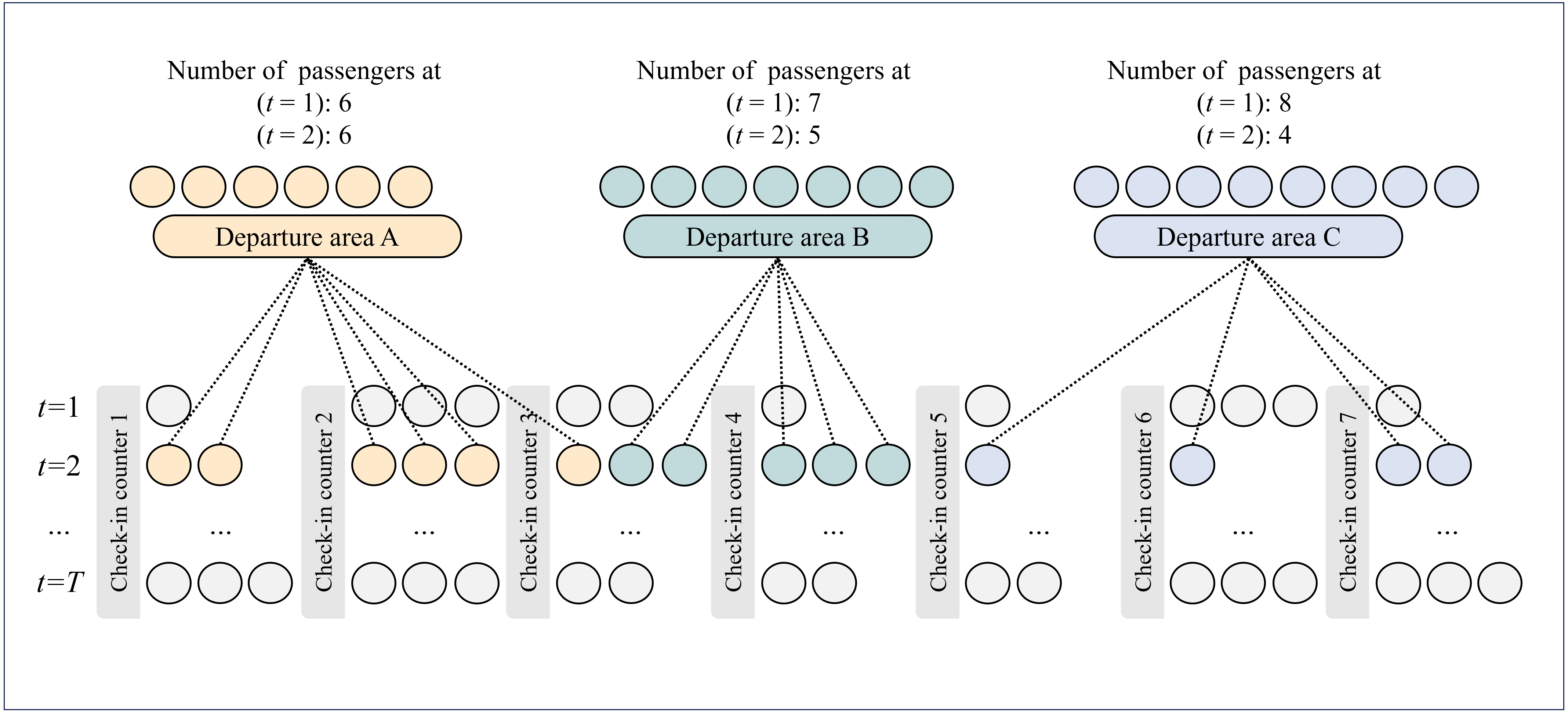 공항 여객 터미널에서의 승객 혼잡 문제를 완화하기 위한 Mixed Integer Programming (MIP) 모델과 동적 스케줄링 프레임워크를 개발
